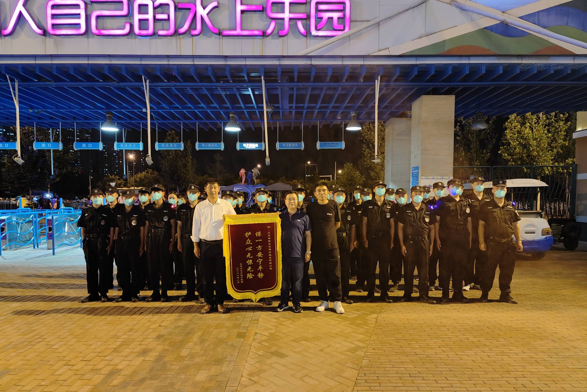 水魔方项目是我公司明星项目,项目经理秉承“一切为甲方着想,为甲方一切着想”的理念。保安员们秉承恪尽职守,尽职尽责的原则,在疫情防控期间,顶高温冒酷暑,始终坚守工作岗位,以崇高的敬业精神,守护着一方平安。